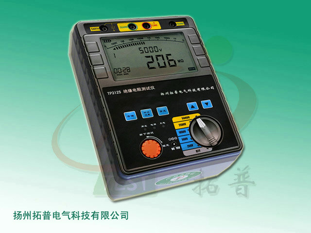 TP3125 絕緣電阻測試儀采用嵌入式工業單片機實時操作系統,數字模擬指針與數字段碼顯示相結合,該儀器具有多種電壓輸出等級(250V、500V、1000V、2500V、5000V)、容量大、抗干擾強、模擬指針與數字同步顯示、交直流兩用、操作簡單、自動計算各種絕緣指標(吸收比、極化指數)、各種測量結果具有防掉電功能等特點。